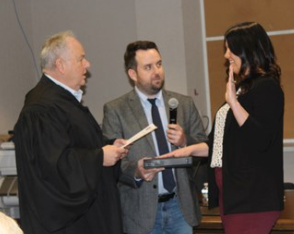 In his first official act as District Judge, John Galloway swore in his brother, Brian Galloway, as well as Erin Mullen for new six-year terms on...