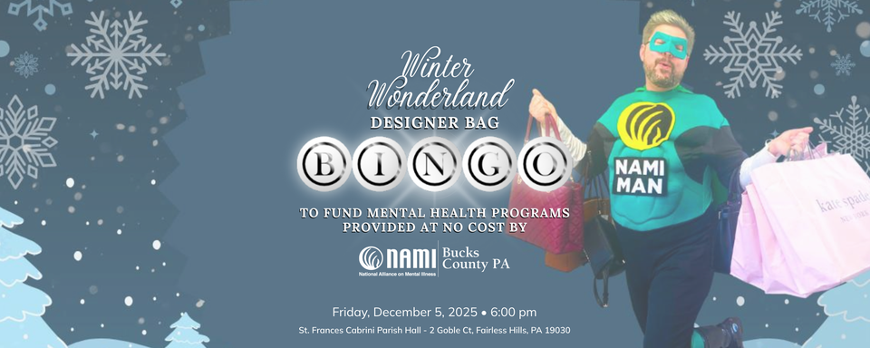 St. Frances Cabrini Monsignor Woods Hall 2 Goble Ct, Fairless Hills, PA, United StatesFrom your organizer(s): Join NAMI Bucks County on Friday, December 5, 2025 for the Winter Wonderland Kate Spade Designer Bag Bingo event for mental health and suicide awareness. The event at St. Frances Cabrini Monsignor Woods Hall located at 2 Goble Ct, in Fairless Hills. You'll have the chance to win one (or more!) of […]