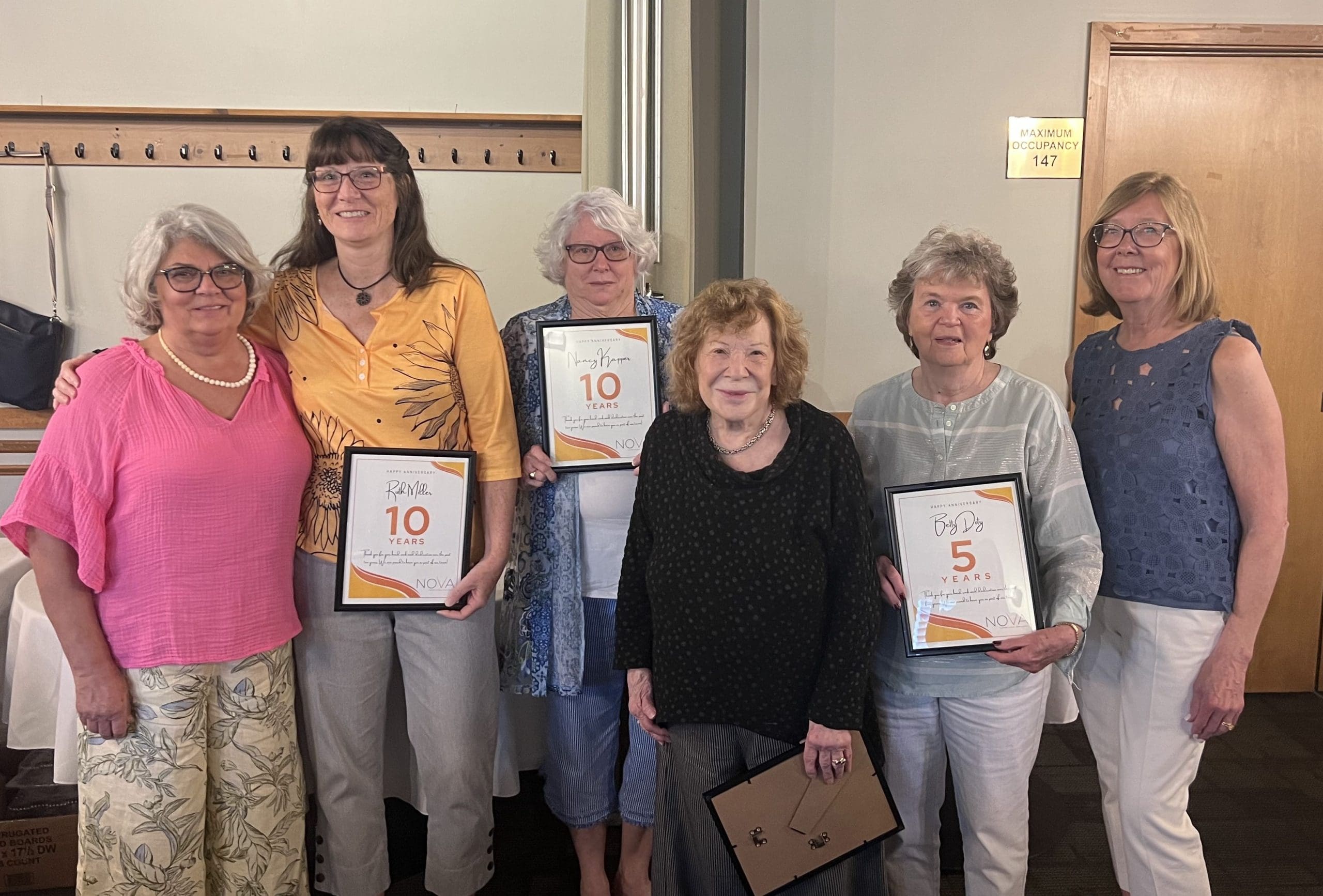 This year, six volunteers received special honors for reaching milestone anniversaries of service to NOVA: