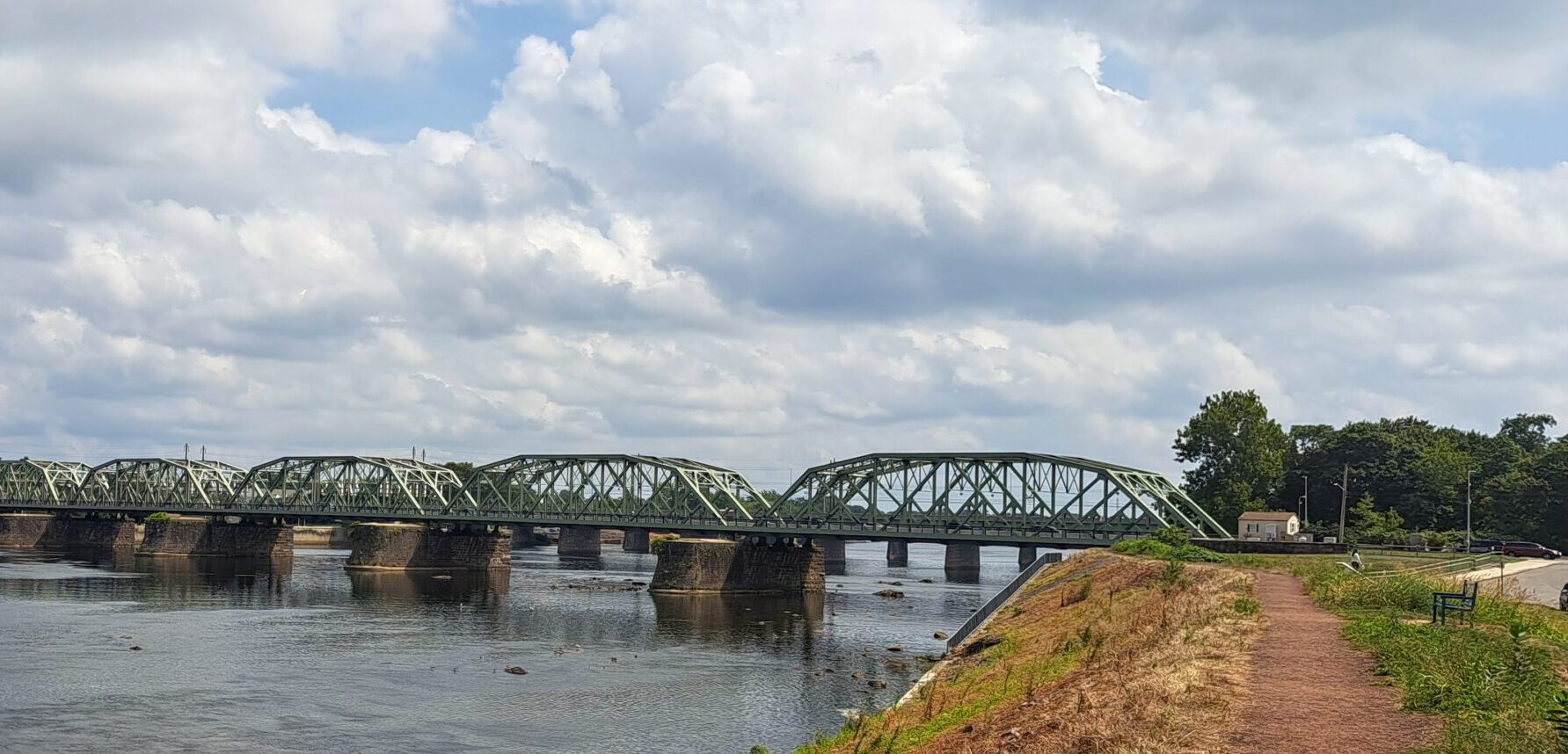 The Calhoun Street Bridge is the Commission’s oldest superstructure, it’s only seven-span truss bridge, and its only wrought-iron bridge. It is the oldest vehicular bridge between Pennsylvania and New Jersey and features Phoenix Columns and other Victorian-age elements. The bridge opened to traffic October 20, 1884. It was constructed for the former Trenton City Delaware Bridge Company, which had a succession of owners that operated it as a privately tolled crossing for more than 40 years before the states of Pennsylvania and New Jersey jointly purchased it on November 14, 1928 and freed it of tolls in a transaction facilitated by the long-defunct Joint Commission for Elimination of (Private) Toll Bridges – Pennsylvania-New Jersey.